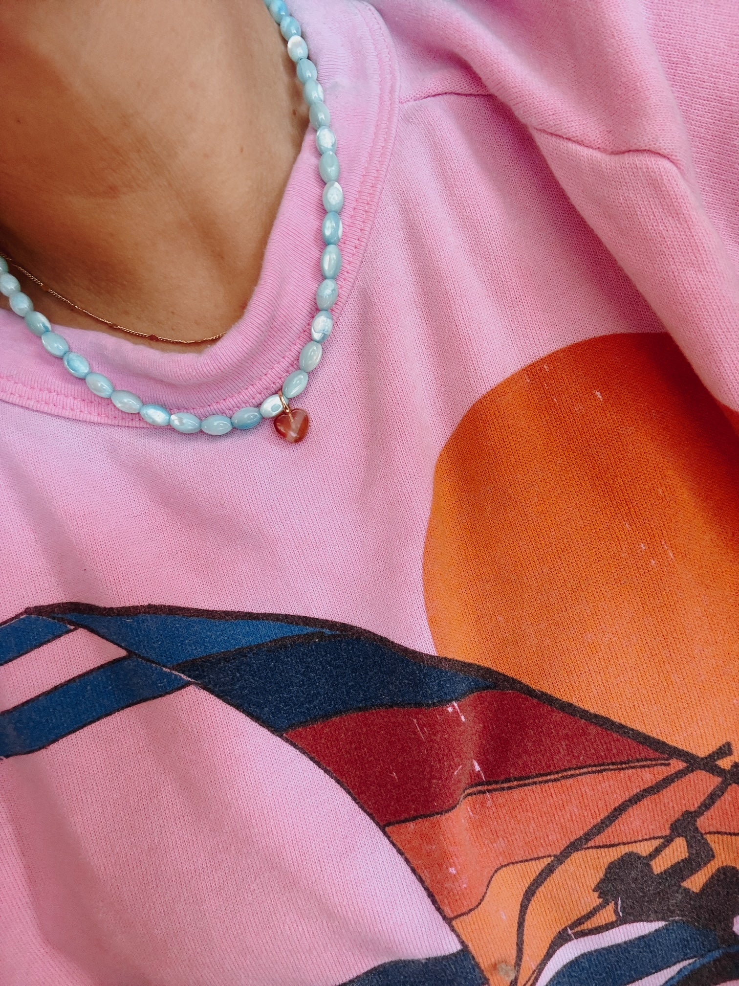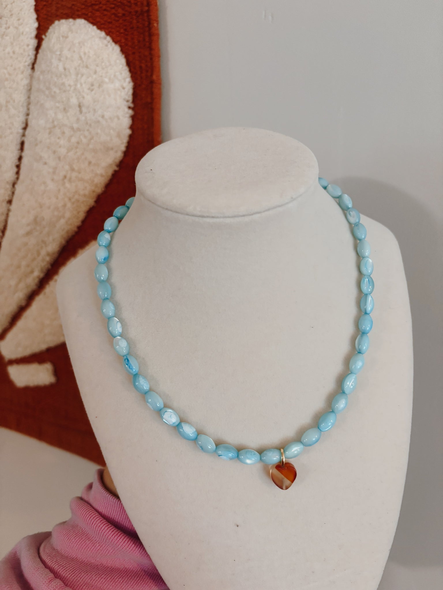 THE COLORS! Vibrant blue rice beads with a citrine stone heart, she is fun! 15 inches with a one inch extender